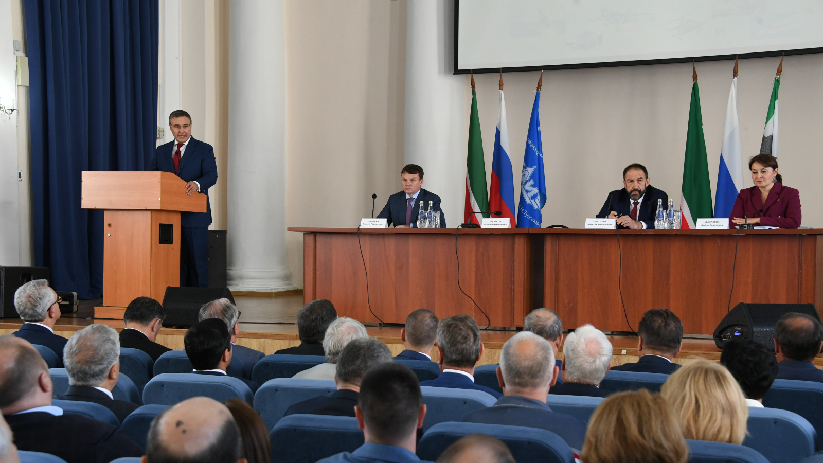 Сегодня коллективу Казанского национального исследовательского технического университета им. А.Н. Туполева - КАИ представили нового ректора. В мероприятии приняли участие Премьер-министр Татарстана Алексей Песошин и министр науки и высшего образования России Валерий Фальков.
