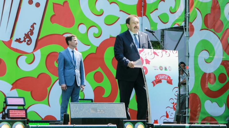 Сабантуй бәйрәменә килгән кунакларны Совет районы башлыгы Роман Фәтхетдинов та котлады.