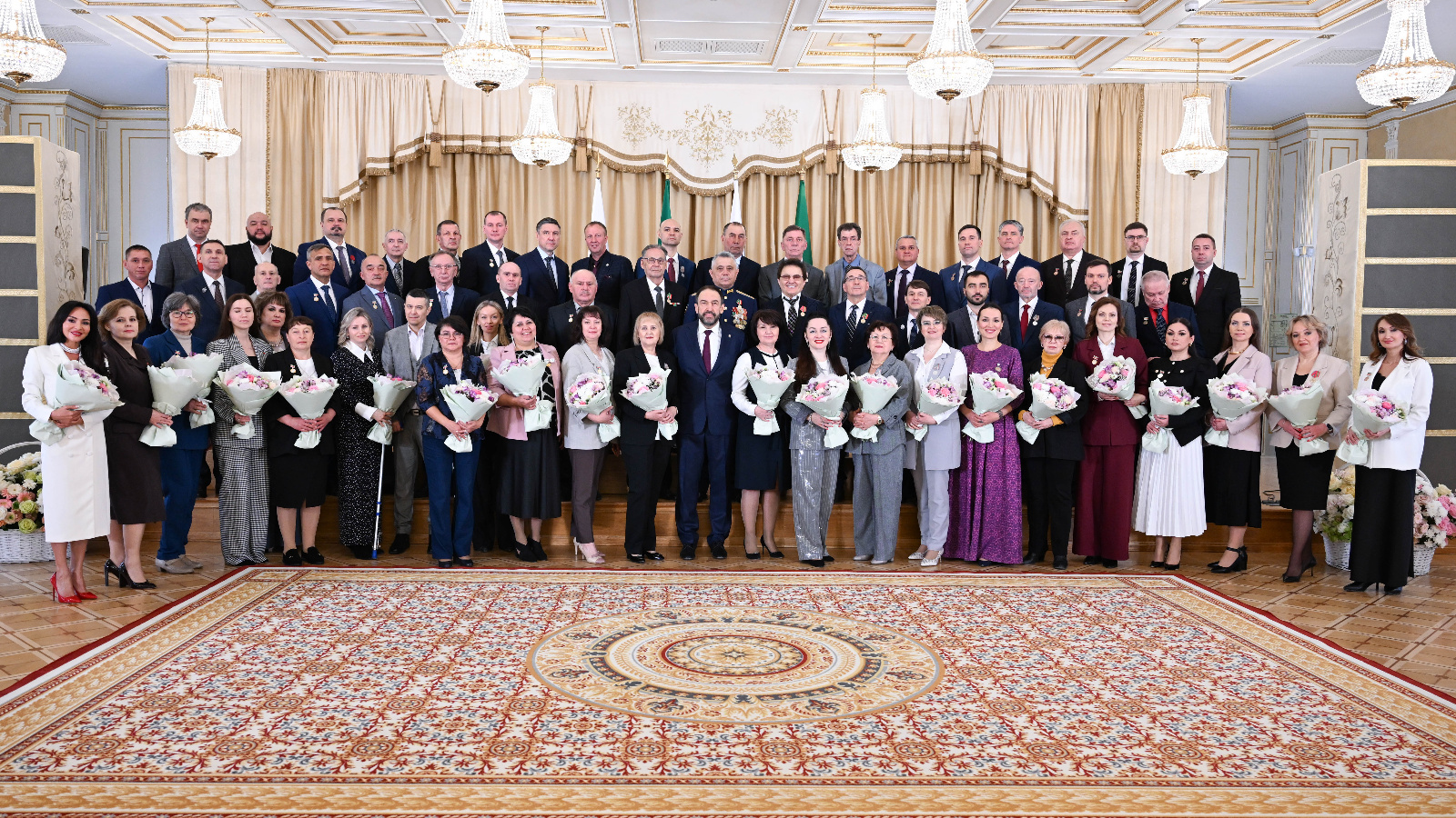 II дәрәҗә «Ватан алдындагы казанышлары өчен» ордены медале белән КФУның Геология һәм нефть-газ технологияләре институты директоры урынбасары Андрей Хашов бүләкләнде. «Ата-ана даны» ордены медале белән 5 бала әти-әниләре Илдар һәм Ләйлә Ситдыйковлар бүләкләнде. «Татарстан Республикасы алдындагы казанышлары өчен» ордены медален «Россия Кызыл Хачы» гомумроссия иҗтимагый оешмасының Татарстан төбәк бүлеге әгъзасы Юрий Анисимовка, КФУның Халыкара мөнәсәбәтләр, тарих һәм көнчыгышны өйрәнү институтының Кытайны өйрәнү һәм Азия-Тын океан тикшеренүләре кафедрасы профессоры, «Хәтер Китабы» редакциясенең баш мөхәррире Рамил Вәлиевка, «Алабуга» МИЗ өлкән белгече Исмәгыйль Гатаулловка тапшырылды.