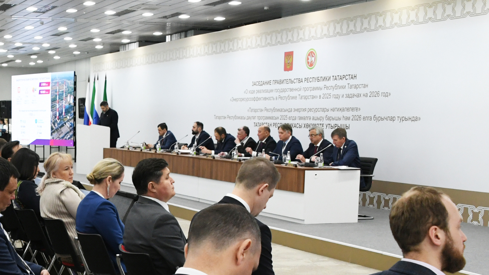 Бүген «Казан Экспо» ХКҮ мәйданчыгында энергия ресурсларының нәтиҗәлелеге мәсьәләләре буенча Татарстан Республикасы Министрлар Кабинеты утырышы узды. Утырышны Татарстан Премьер-министры Алексей Песошин уздырды. Төп тема - 2025 елда «Татарстан Республикасында энергия ресурсларының нәтиҗәлелеге» Татарстан Республикасы дәүләт программасын гамәлгә ашыруның барышы һәм 2026 елга бурычлар турында.